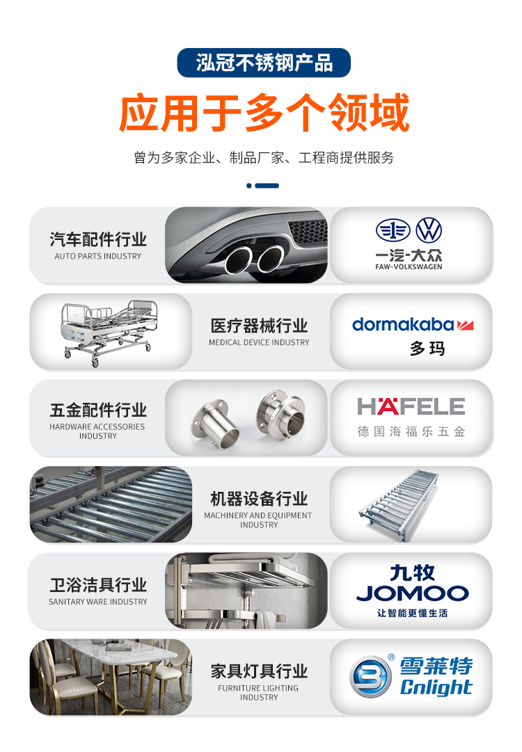 用途范围:汽车配件,金属制品,家用电器,机械制造,卫生洁具,轨道交通,压力容器,建筑装饰,餐饮厨具,化工设备,日用电器,食用机械,结构制管等